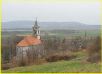 A mai templom feletti dombjosalon látható a középkori Kisfalud község gótikus templomának romja.